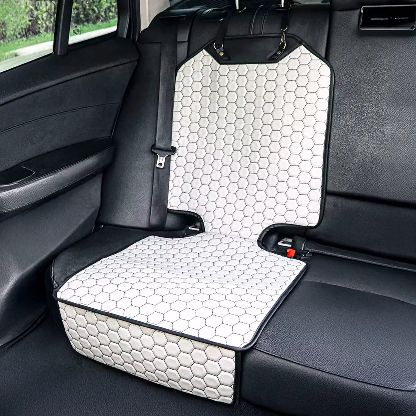 سجادة حماية مقعد السيارة هذه توفر حاجزًا فعالًا ضد البقع والانسكابات. تصميمها السداسي الأبيض يضيف لمسة من الأناقة إلى داخل سيارتك. سهلة التركيب، تتناسب مع معظم السيارات.