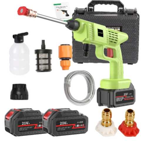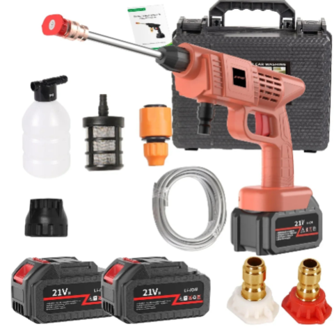 Denne trådløse rengjøringspistolen for bil leverer et høytrykkssprut som kan fjerne smuss i dybden. Lett, kompakt og enkel å håndtere, lar den deg vaske kjøretøyet ditt uten problemer, uansett hvor du er. Det oppladbare batteriet garanterer ideell driftstid for utendørs rengjøring.